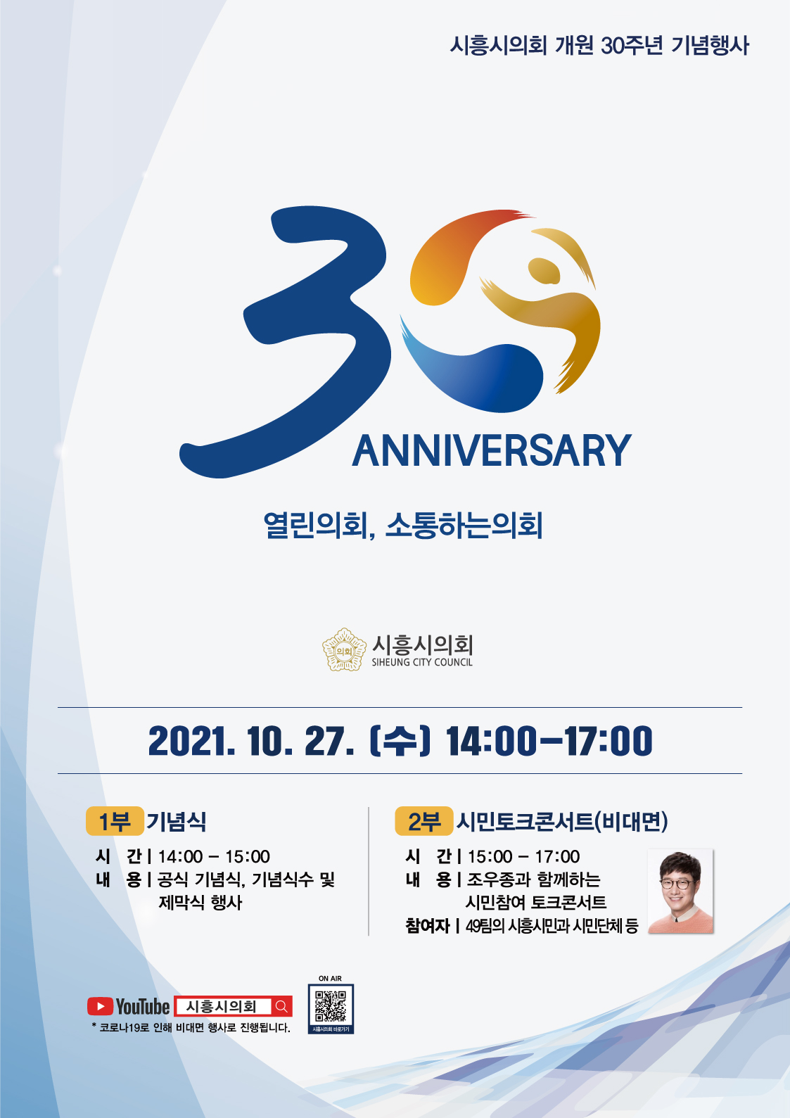 □ 행 사 명 : 2021. 시흥시의회 개원 30주년 기념 행사 / 온라인 실시간 참여가능(시흥시의회 유튜브)